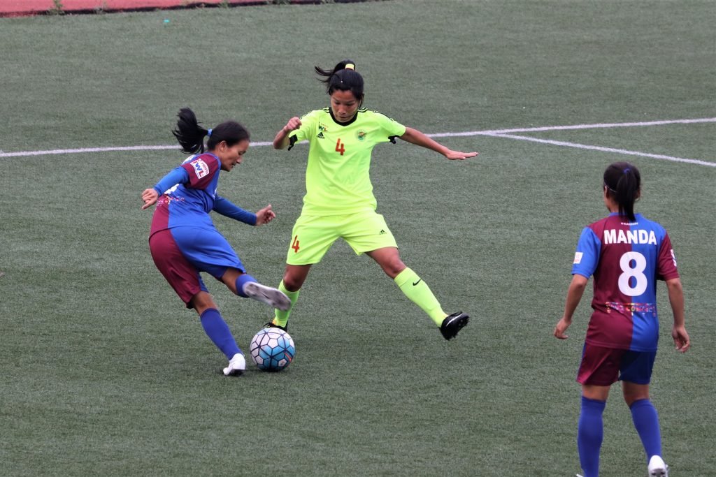 Kamala Devi was an ever present danger to KRYPHSA and came close on the hour mark when she was unmarked and headed in a cross only to see an opposition defender sail in and clear the ball away.