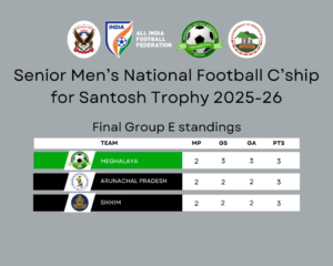 Shillong, Dec 23: Christmas came early for Meghalaya football fans as their state team defeated Arunachal Pradesh 2-1 in the last Group E game of the Senior Men’s National Football Championship for the Santosh Trophy 2025-26 and therefore qualified for the final round, which will be played next month in Assam.