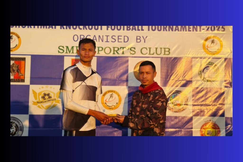 Mebanshngain (pictured left) was named Player of the Match and received his memento from Syntem Kamwamut Nengnong, the General Secretary of Smit SC.