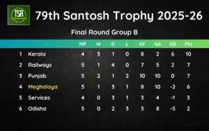 Shillong, Jan 31: Meghalaya will have to wait until tomorrow morning to know whether they will progress to the quarterfinals of the National Football Championship for the Santosh Trophy 2025-26 after their last Group B match ended 2-2 against Railways in Silapathar, Assam, today. This was Meghalaya’s third draw in the last four games.