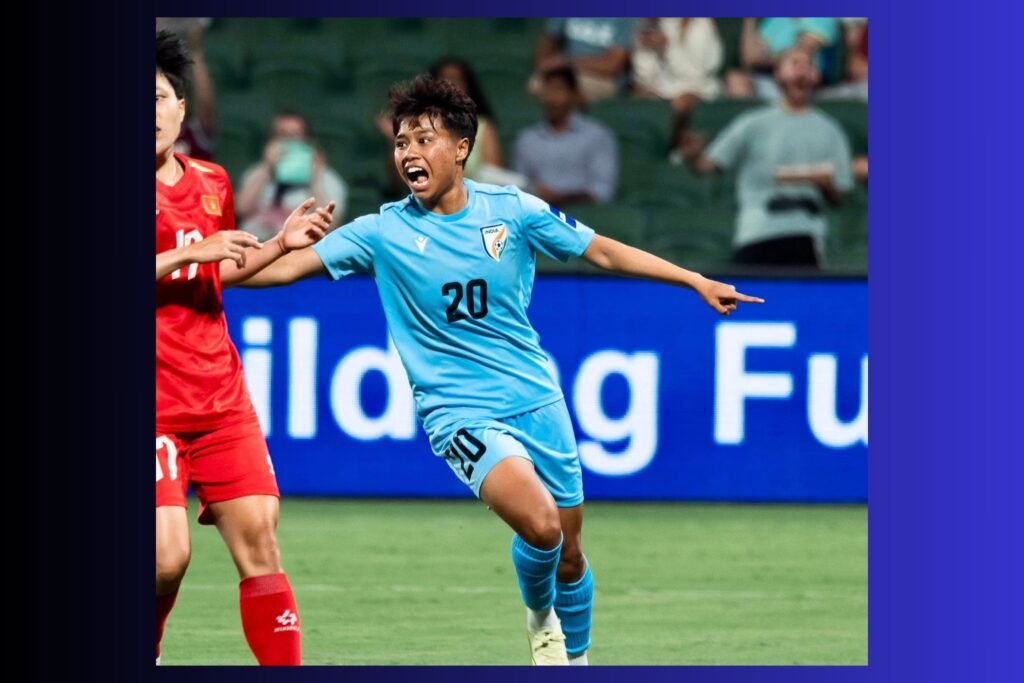 The midfielder from Meghalaya wasn’t even done, as she went close with a header over the bar in the 64th minute, and she played a huge role in defensive and offensive duties, working well with both the defence and forwards. She was shown a yellow card for a rough tackle in the 70th minute but that couldn’t take anything away from her magical first appearance for the national team.