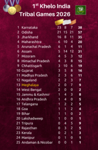 Shillong, Apr 3: Meghalaya claimed another medal in archery on the concluding day of the 1st Khelo India Tribal Games in Chhattisgarh today.