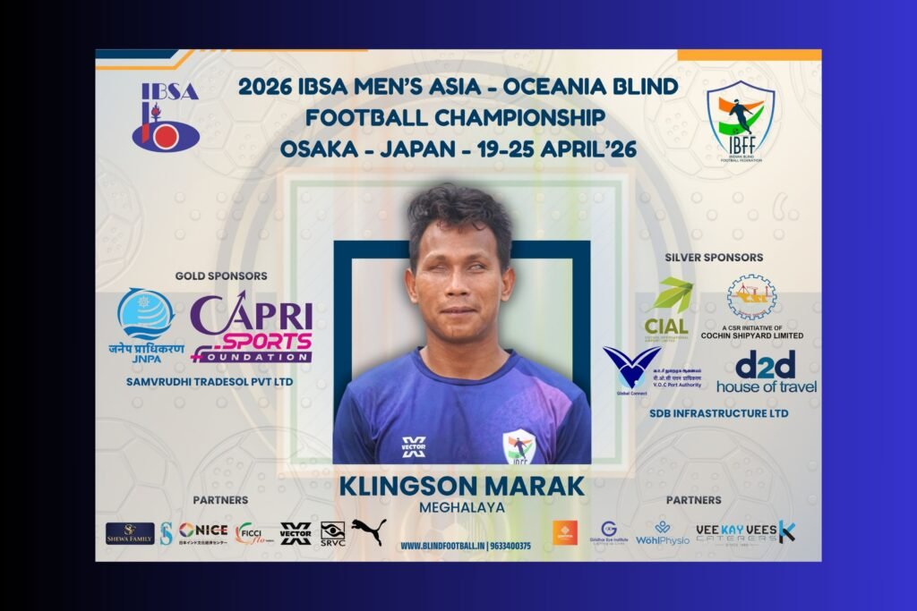 Shillong, Apr 17: After weeks spent training for this moment, Klingson Marak has been selected in the final squad of the Indian men’s blind football team that will participate at the IBSA Asian Men’s Blind Football Championship 2026.