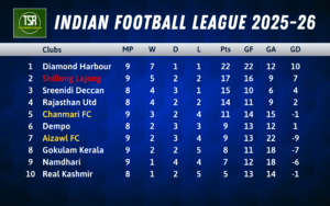 Phrangki Buam (26′), Everbrightson Mylliempdah (45′), Lamlallian (67’P), Gladdy Kharbuli (70′) and Tremiki Lamurong (87′, 90’+4) were the scorers for the home side, while Lalhriatpuia Lalrinfela (50′) had briefly reduced the margin for Aizawl. Tremiki had only come on as a 78th minute substitute before scoring a quick brace.
