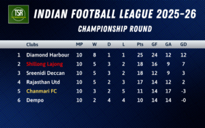 Shillong, Apr 26: Shillong Lajong FC and Dempo SC played out a 0-0 draw in their Championship Round match in the Indian Football League 2025-26 at the SSA Stadium here this evening.