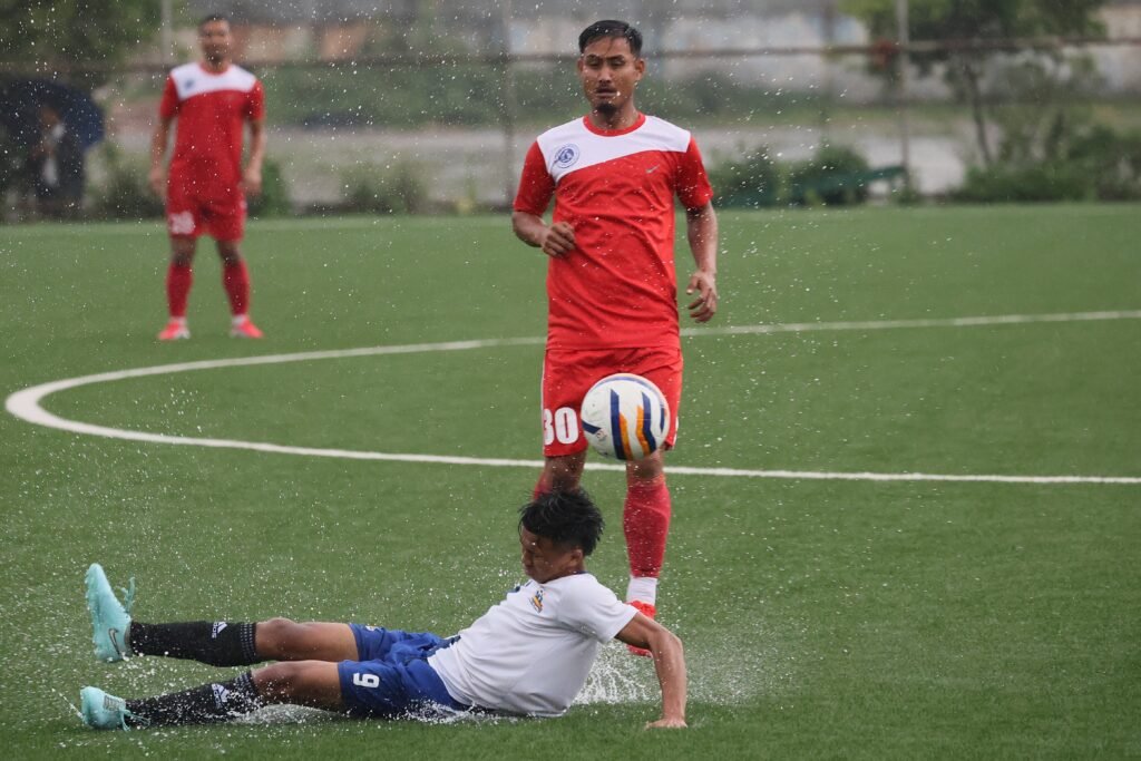Heavy rain was witnessed across the state today, which made playing conditions a challenge for the footballers. However, the Group F fixture between Lawbah SC and Mishon SSCC in Mairang could not take place at all due to the condition of the ground and will have to be rescheduled.