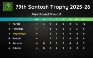 That last match saw Meghalaya hold Services to a draw. Before that, Meghalaya drew with Punjab on 24th January and beat Odisha in their opener on 22nd January.